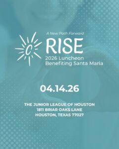 DONATE TODAYSponsor RISE 2026 Save the Date for RISE 2026 -April 14, 2026 at The Junior League of Houston. If you are interested in sponsorship, contact Beth Wilson at bwilson@santamariahostel.org more information. We can’t wait to celebrate with you again and share the impact you make possible!